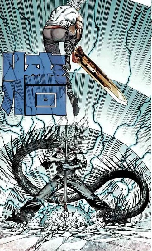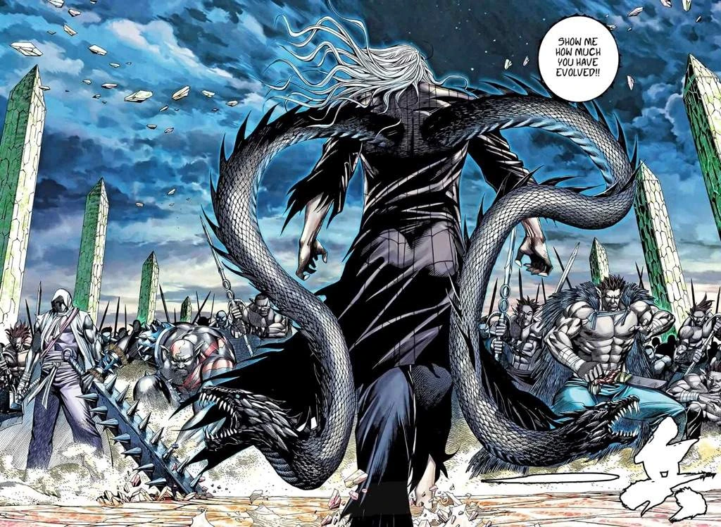 Ace displaying the Power of the White Snake through his snake themed Sage Mode.