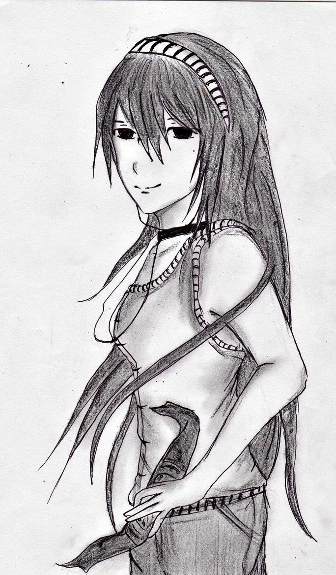 she is a fair skinned very attractive girl with long pitch black hair with side bangs on both sides of her face that reached down mid- faced. She has dark black eyes. She is normally seen with wearing the usual Ninja outfit for Konoha and the normal ninja pants tucked into her black ninja sandals. She resembles her aunt Mikoto Uchiha greatly. She sometimes is seen when outside of ninja work she wears a light gray sleeveless jacket, with a dark blue strap slightly above her stomach, for pants she wears comfortable dark blue sweat pants tucked into her sandals. This outfit resembles Sasuke’s and Tsunade’s