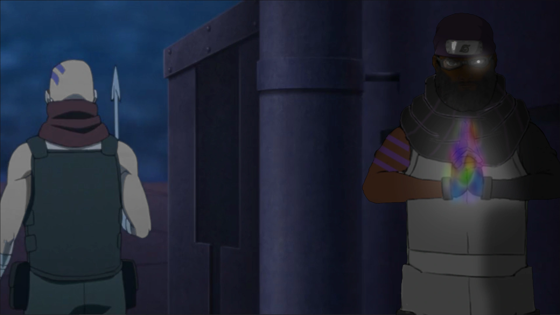 Jigen is forced to leave the battle and Boro arrives, who was tasked with guarding a pot with Naruto sealed inside. Boro notes the place is only accessible through space–time ninjutsu and asks how Arikurin plans on escaping. Boro challenges Arikurin to come at him. Arikurin attacks him with a Thunderous Timpani. Boro responds by quickly regenerating. The 2 continue to exchange a few blows. Not long after, Arikurin falls to the ground, and suddenly struggles to move as well. Using his Sonic Dash Technique he places some distance between him and Boro but collapses not too far away. With his Byakugan he realized Boro was exposing him to some Dark Mist Cloud which sapped away their strength.