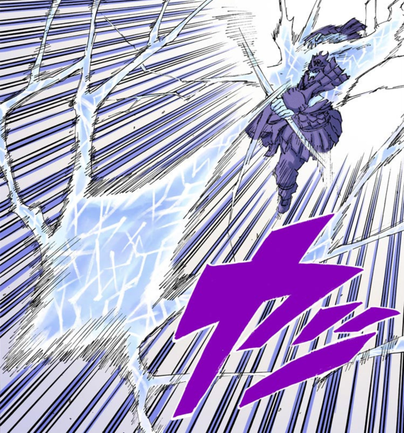 After absorbing chakra from all nine tailed beasts and using his Susanoo as a vessel, Sasuke then creates a longbow and arrow which are infused with lightning-natured chakra. One arrow was powerful enough to match the combined power of both senjutsu-enhanced Tailed Beast Ball Rasenshuriken and Wind Release: Ultra-Big Ball Rasenshuriken, producing a massive explosion on impact.