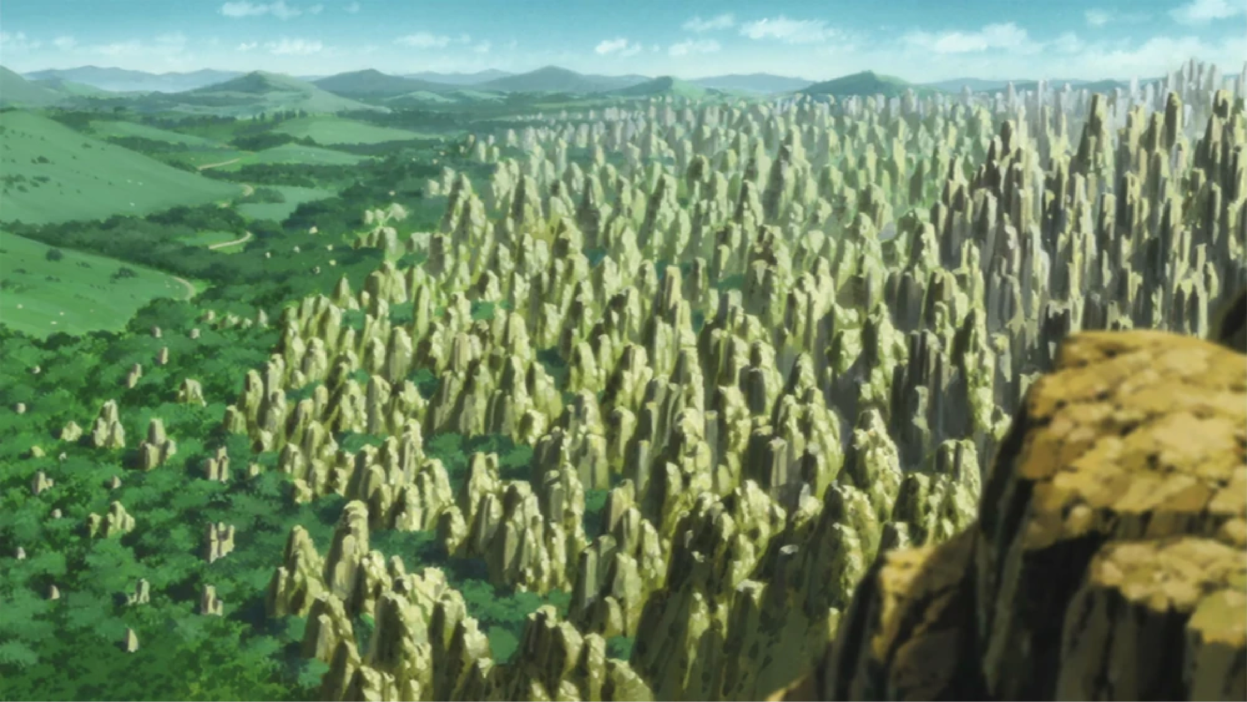 The Land of Earth (土の国, Tsuchi no Kuni) has seen little attention in the series thus far. It is located northwest of the Land of Fire. The country is mostly comprised of desolate, rocky areas. The border of the Land of Earth runs along a rocky mountain range, blocking communication with other countries. The wind blowing from the north passes over these mountains, carrying small rocks from the Land of Earth to the surrounding countries. This famous natural phenomenon is called “Rock Rain” (岩雨, Gan'u).