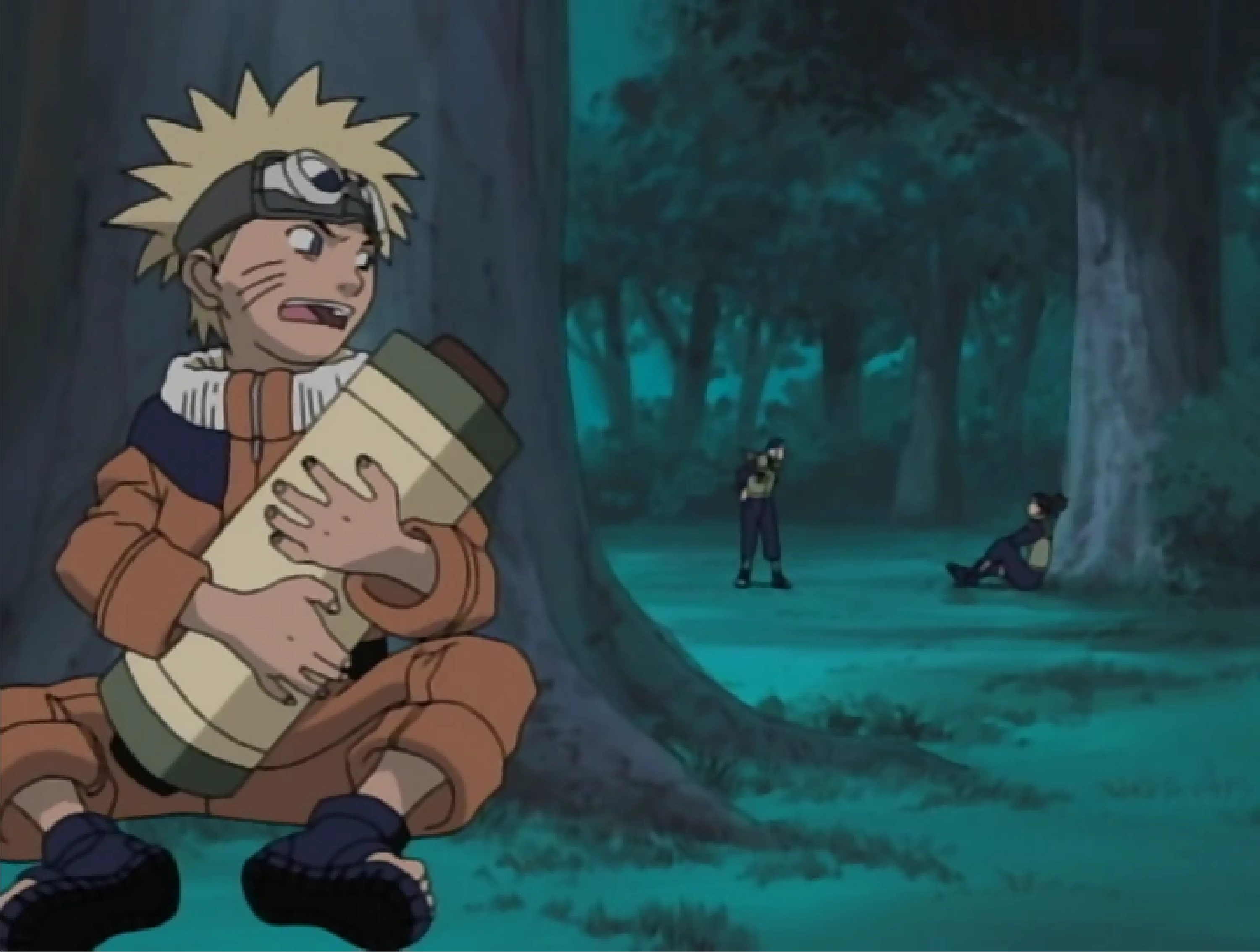 Naruto hiding from Mizuki.
