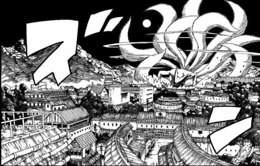 The Nine-Tails attacking Konohagakure.