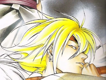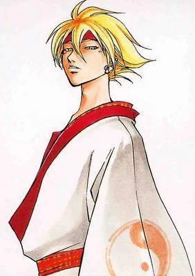 Rosuto has a lean-built, muscular appearance and is quite tall; standing at a full height of 6ft 2in. Despite appearances he is actually quite strong physically as he makes use of Nichiyō Rōzuobu's muscle stimulation to increase muscle contraction. He usually wears his blond-colored hair in a messy fashion after the style his deceased father once favored as a means of paying homage, held in place by a red-colored bandanna that frames his face that has the symbol of Kirigakure sowed into it in place of a traditional Ninja headband. His hair hangs between his eyes, with two bangs on either side of his head to frame it. Like his hair, Rosuto has noticeably yellow eyes that many have compared to glowing embers because of their color. Rosuto also appears to have piercings on his right ear; mainly focused around the lobe and has several red banded tattoos covering his chest and upper body that actually serve as his summoning tattoo.