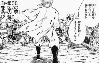 - (To Seireitou) "Sei... The sword in your hand; who taught us how to use it? Our bushido and way of life, who taught us these? The one who gave us a world to live in, was without a doubt, Shōyō-sensei. Yet, this world took him from us. In that case, we have no other choice, but to fight this world. We have to completely destroy this world that took him from us. Hey Sei, how do you feel living in this world? In this world that took our teacher away from us. How could you live in it, in such a carefree manner? It pisses me off!"