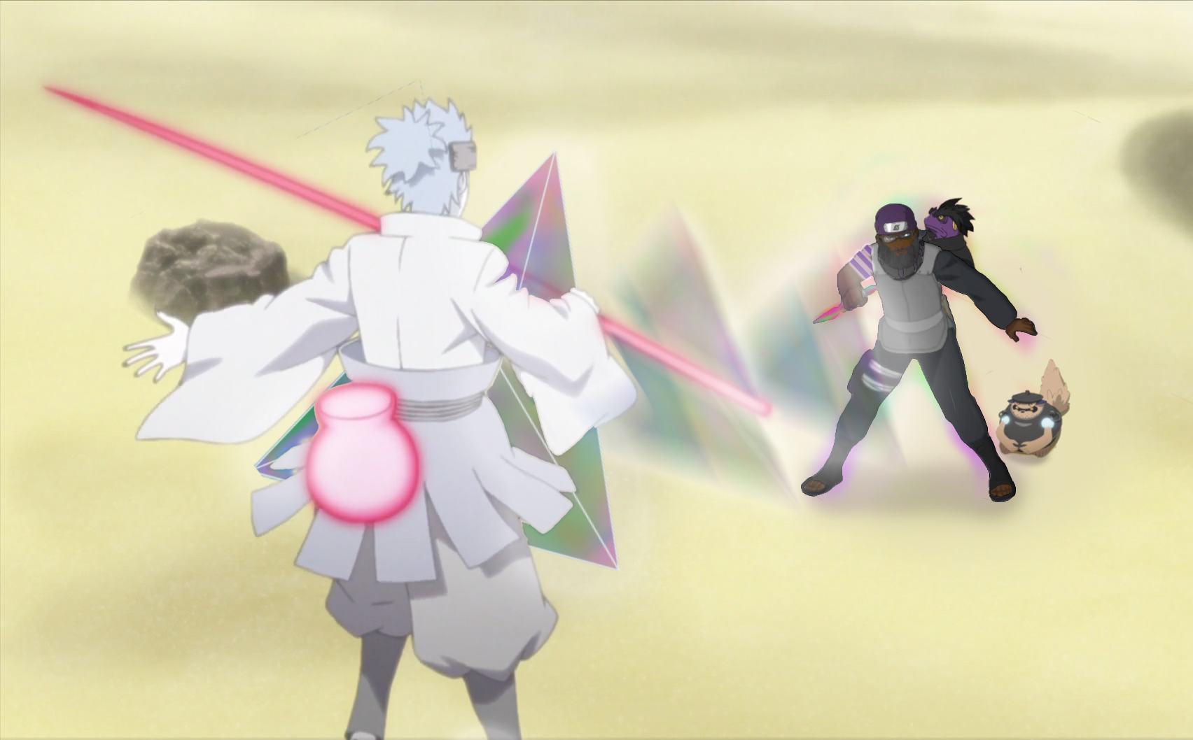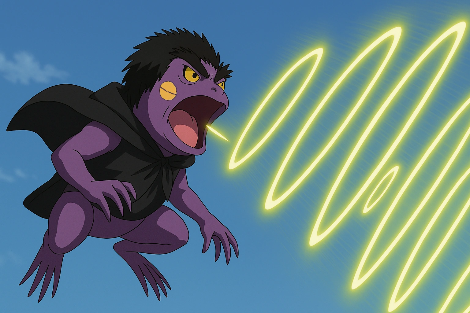 Training under Shikazaku was nothing short of strange. Lessons were unpredictable and harsh, often disguised as riddles or traps. One day, Arikurin would find himself meditating in a pond of deafening croaks, trying to hear his own chakra. The next, he’d be navigating a canyon of vibrating stones, where a single misstep could rupture his inner balance. Eventually, through trials of silence and sound, Arikurin mastered Senjutsu. Natural energy flowed through him like a perfectly tuned chord—resonant, balanced, alive. In that moment, Shikazaku said nothing. The prince had trained the one who could hear the storm. And the storm was ready.