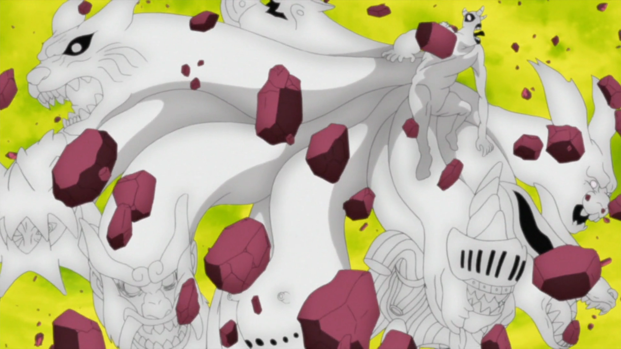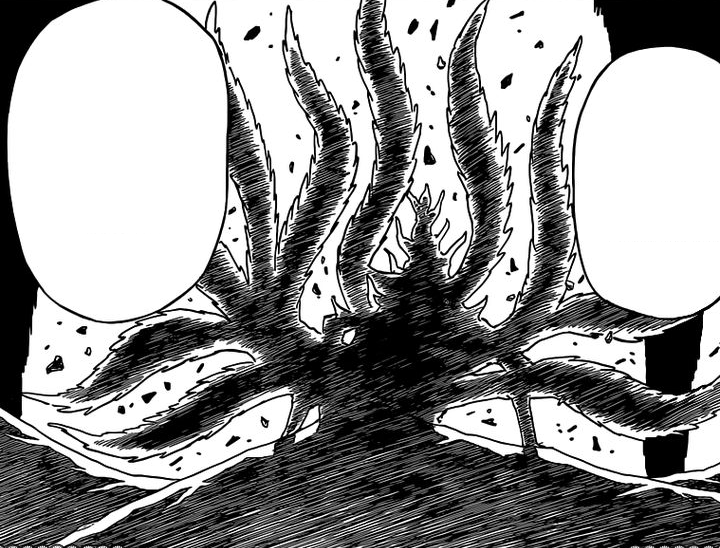 The nine tailed beasts being freed from the Ten-Tails.