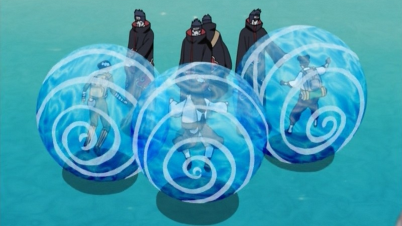 This technique is used to trap a victim inside a virtually inescapable sphere of water. The only downside to this technique is that the user must keep at least one arm inside the sphere at all times in order for the victim to remain imprisoned. This technique requires a sufficient amount of water, which can be provided by expelling it from one's mouth. Despite the fact that the prison is made up entirely out of water, it is stronger than steel as stated by Zabuza Momochi. Once trapped, the target is unable to move while within it due to the heaviness of the water.